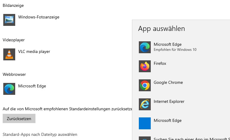 Auch die Auswahl des Standard-Browsers kann Microsoft nicht unkommentiert lassen: